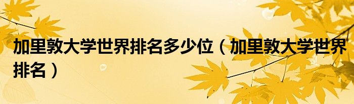 关于加里敦大学世界排名多少位,加里敦大学世界排名这个很多人还不知道,今天菲菲来为大家解答以上的问题,现在让我们一起来看看吧!