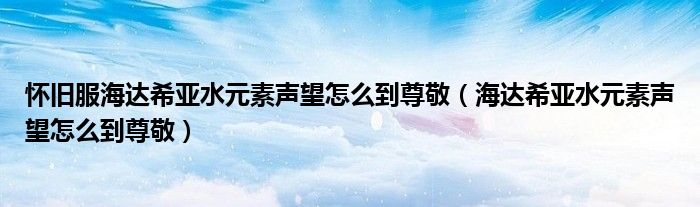 怀旧服海达希亚水元素声望怎么到尊敬(海达希亚水元素声望怎么到尊敬)