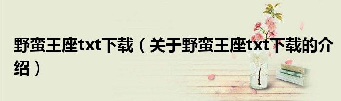 大家好,今天小乐来为大家解答以上的问题。野蛮王座txt下载,关于野蛮王座txt下载的介绍很多人还不知道,现在让我们一起来看看吧!