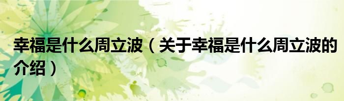 大家好,今天小乐来为大家解答以上的问题。幸福是什么周立波,关于幸福是什么周立波的介绍很多人还不知道,现在让我们一起来看看吧!