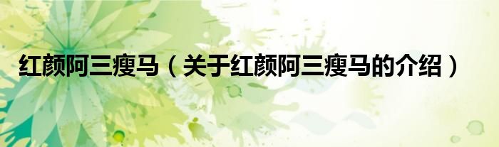 红颜阿三瘦马(关于红颜阿三瘦马的介绍)