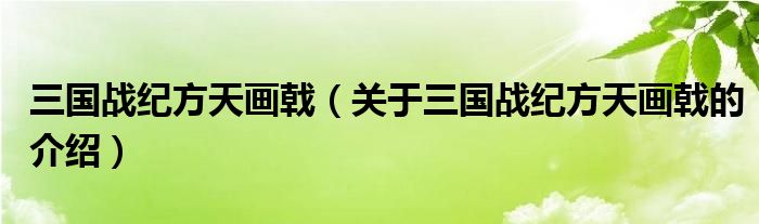 大家好,今天小乐来为大家解答以上的问题。三国战纪方天画戟,关于三国战纪方天画戟的介绍很多人还不知道,现在让我们一起来看看吧!