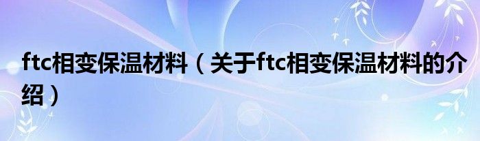 大家好,今天小乐来为大家解答以上的问题。ftc相变保温材料,关于ftc相变保温材料的介绍很多人还不知道,现在让我们一起来看看吧!