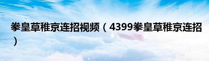 关于拳皇草稚京连招视频,4399拳皇草稚京连招这个很多人还不知道,今天菲菲来为大家解答以上的问题,现在让我们一起来看看吧!