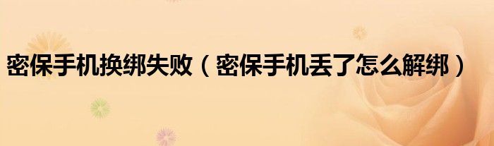 关于密保手机换绑失败,密保手机丢了怎么解绑这个很多人还不知道,今天菲菲来为大家解答以上的问题,现在让我们一起来看看吧!