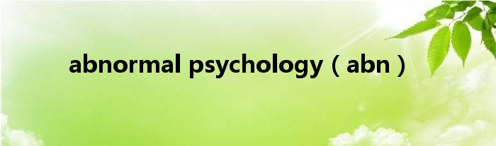 关于abnormal psychology,abn这个很多人还不知道,今天菲菲来为大家解答以上的问题,现在让我们一起来看看吧!