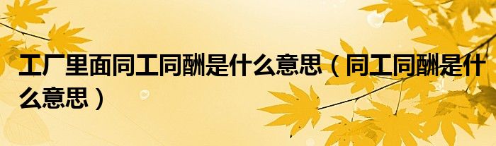 关于工厂里面同工同酬是什么意思,同工同酬是什么意思这个很多人还不知道,今天菲菲来为大家解答以上的问题,现在让我们一起来看看吧!
