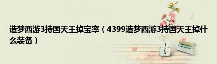 关于造梦西游3持国天王掉宝率,4399造梦西游3持国天王掉什么装备这个很多人还不知道,今天菲菲来为大家解答以上的问题,现在让我们一起来看看吧!