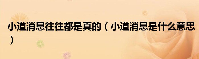 关于小道消息往往都是真的,小道消息是什么意思这个很多人还不知道,今天菲菲来为大家解答以上的问题,现在让我们一起来看看吧!