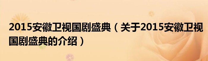 2015安徽卫视国剧盛典(关于2015安徽卫视国剧盛典的介绍)