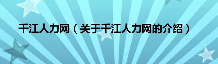 大家好,今天小乐来为大家解答以上的问题。千江人力网,关于千江人力网的介绍很多人还不知道,现在让我们一起来看看吧!
