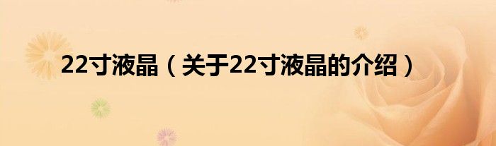 大家好,今天小乐来为大家解答以上的问题。22寸液晶,关于22寸液晶的介绍很多人还不知道,现在让我们一起来看看吧!