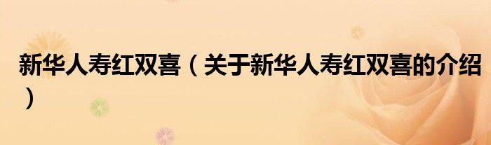 大家好,今天小乐来为大家解答以上的问题。新华人寿红双喜,关于新华人寿红双喜的介绍很多人还不知道,现在让我们一起来看看吧!
