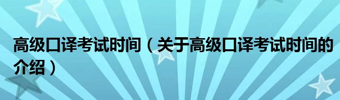 大家好,今天小乐来为大家解答以上的问题。高级口译考试时间,关于高级口译考试时间的介绍很多人还不知道,现在让我们一起来看看吧!