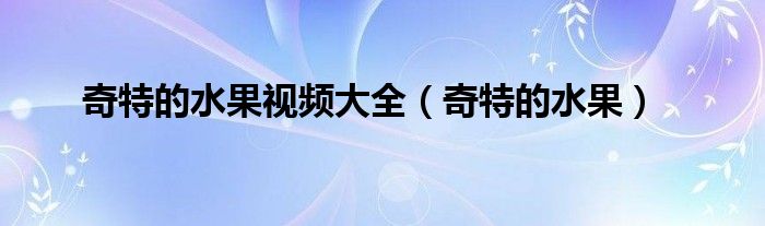 关于奇特的水果视频大全,奇特的水果这个很多人还不知道,今天菲菲来为大家解答以上的问题,现在让我们一起来看看吧!