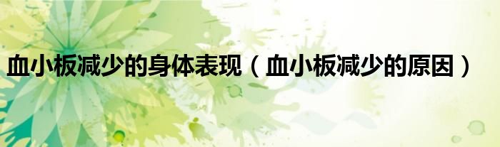 关于血小板减少的身体表现,血小板减少的原因这个很多人还不知道,今天菲菲来为大家解答以上的问题,现在让我们一起来看看吧!