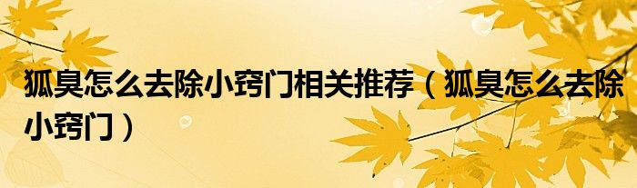 关于狐臭怎么去除小窍门相关推荐,狐臭怎么去除小窍门这个很多人还不知道,今天菲菲来为大家解答以上的问题,现在让我们一起来看看吧!