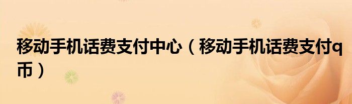 大家好,小晋来为大家解答以下问题,关于移动手机话费支付中心,移动手机话费支付q币很多人还不知道,今天让我们一起来看看吧!