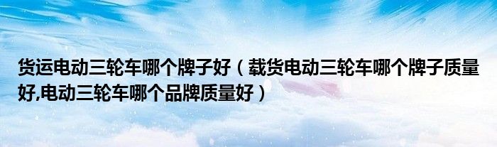 小鱼来为大家解答以下问题,货运电动三轮车哪个牌子好,载货电动三轮车哪个牌子质量好,电动三轮车哪个品牌质量好很多人还不知道,现在让我们一起来看看吧!