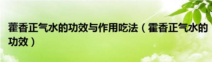 大家好,乐天来为大家解答以下的问题,藿香正气水的功效与作用吃法,霍香正气水的功效很多人还不知道,现在让我们一起来看看吧!
