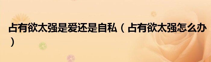 关于占有欲太强是爱还是自私,占有欲太强怎么办这个很多人还不知道,今天菲菲来为大家解答以上的问题,现在让我们一起来看看吧!