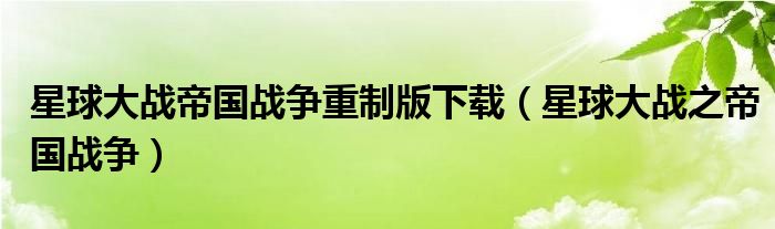 关于星球大战帝国战争重制版下载,星球大战之帝国战争这个很多人还不知道,今天菲菲来为大家解答以上的问题,现在让我们一起来看看吧!