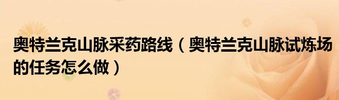 奥特兰克山脉采药路线(奥特兰克山脉试炼场的任务怎么做)