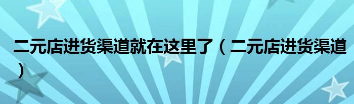二元店进货渠道就在这里了(二元店进货渠道)