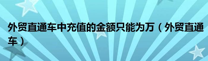 关于外贸直通车中充值的金额只能为万,外贸直通车这个很多人还不知道,今天菲菲来为大家解答以上的问题,现在让我们一起来看看吧!