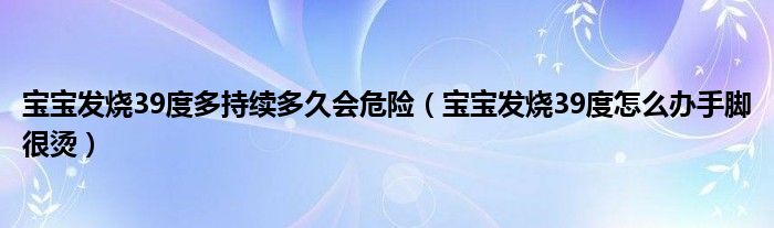 大家好,乐天来为大家解答以下的问题,宝宝发烧39度多持续多久会危险,宝宝发烧39度怎么办手脚很烫很多人还不知道,现在让我们一起来看看吧!