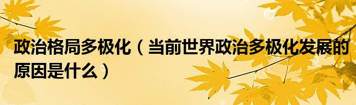 关于政治格局多极化,当前世界政治多极化发展的原因是什么这个很多人还不知道,今天菲菲来为大家解答以上的问题,现在让我们一起来看看吧!