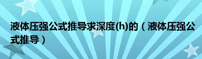 大家好,小晋来为大家解答以下问题,关于液体压强公式推导求深度(h)的,液体压强公式推导很多人还不知道,今天让我们一起来看看吧!