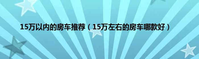 大家好,综合小编来为大家讲解下。15万以内的房车推荐,15万左右的房车哪款好这个很多人还不知道,现在让我们一起来看看吧!