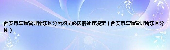大家好,综合小编来为大家讲解下。西安市车辆管理所东区分所对吴必法的处理决定,西安市车辆管理所东区分所这个很多人还不知道,现在让我们一起来看看吧!