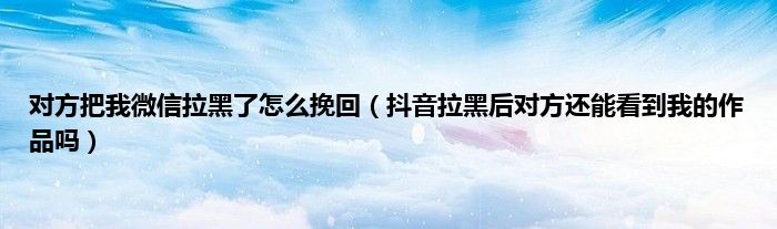 大家好,综合小编来为大家讲解下对方把我微信拉黑了怎么挽回,抖音拉黑后对方还能看到我的作品吗这个很多人还不知道,现在让我们一起来看看吧!