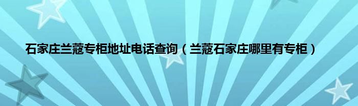 石家庄兰蔻专柜地址电话查询(兰蔻石家庄哪里有专柜)