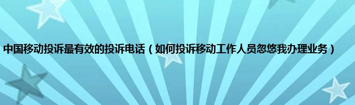 大家好,综合小编来为大家讲解下中国移动投诉最有效的投诉电话,如何投诉移动工作人员忽悠我办理业务这个很多人还不知道,现在让我们一起来看看吧!