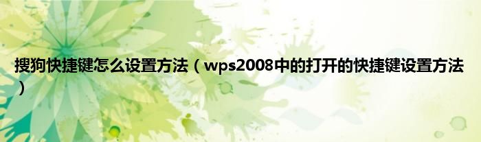 大家好,综合小编来为大家讲解下搜狗快捷键怎么设置方法,wps2008中的打开的快捷键设置方法这个很多人还不知道,现在让我们一起来看看吧!
