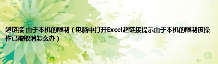超链接 由于本机的限制(电脑中打开Excel超链接提示由于本机的限制该操作已被取消怎么办)