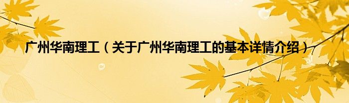 本文关于广州华南理工的基本详情介绍就讲解完毕,希望对大家有所帮助。