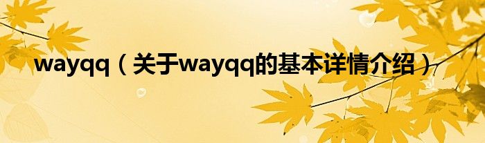本文关于wayqq的基本详情介绍就讲解完毕,希望对大家有所帮助。