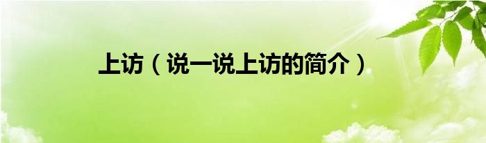 夏弥来为大家解答以下的问题,上访,说一说上访的简介,现在让我们一起来看看吧!