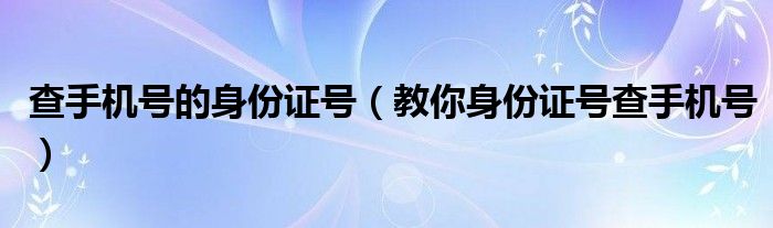 大家好,小晋来为大家解答以下问题,关于查手机号的身份证号,教你身份证号查手机号很多人还不知道,今天让我们一起来看看吧!