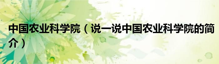 夏弥来为大家解答以下的问题,中国农业科学院,说一说中国农业科学院的简介,现在让我们一起来看看吧!