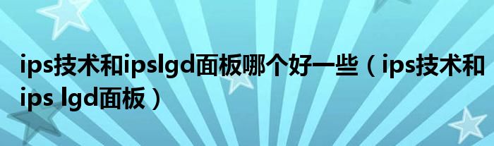 关于ips技术和ipslgd面板哪个好一些,ips技术和ips lgd面板这个很多人还不知道,今天菲菲来为大家解答以上的问题,现在让我们一起来看看吧!