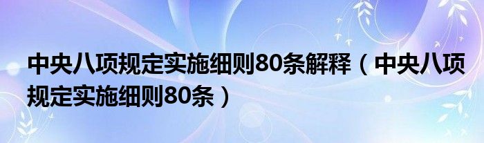 关于中央八项规定实施细则80条解释,中央八项规定实施细则80条这个很多人还不知道,今天菲菲来为大家解答以上的问题,现在让我们一起来看看吧!