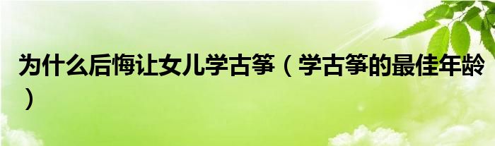 1、后悔让女儿学古筝的原因其实并不是学习古筝不好,学古筝很好,而且还可以陶冶孩子的情操,一些家长后悔让孩子学习古筝,也是因为学习古筝非常的辛苦,身为家长非常心疼,学习古筝可能会占用孩子玩耍的时间,让孩子的童年只剩下学习,有些孩子在刚开始练习古筝的时候,由于不会弹,手指经常会受伤,家长们肯定都是看在眼里的。
