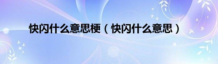 关于快闪什么意思梗,快闪什么意思这个很多人还不知道,今天菲菲来为大家解答以上的问题,现在让我们一起来看看吧!