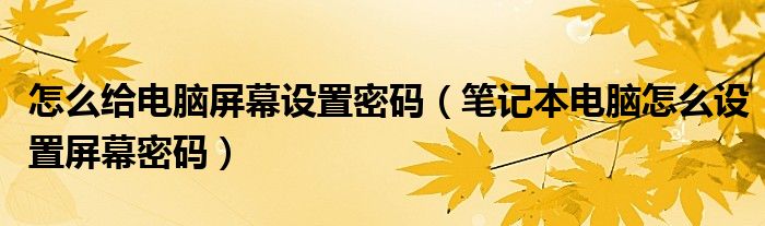 关于怎么给电脑屏幕设置密码,笔记本电脑怎么设置屏幕密码这个很多人还不知道,今天菲菲来为大家解答以上的问题,现在让我们一起来看看吧!