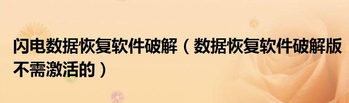 关于闪电数据恢复软件破解,数据恢复软件破解版不需激活的这个很多人还不知道,今天菲菲来为大家解答以上的问题,现在让我们一起来看看吧!